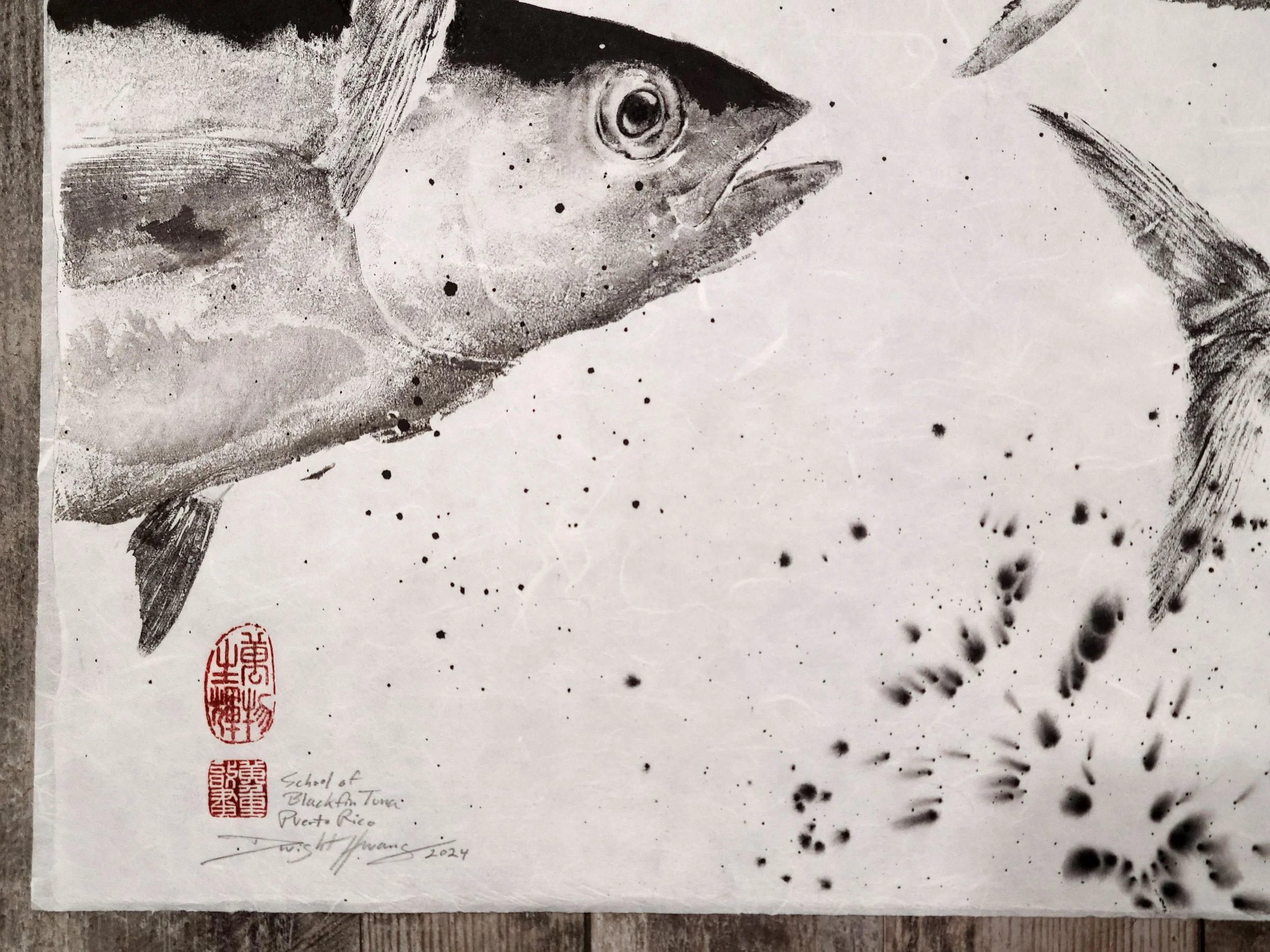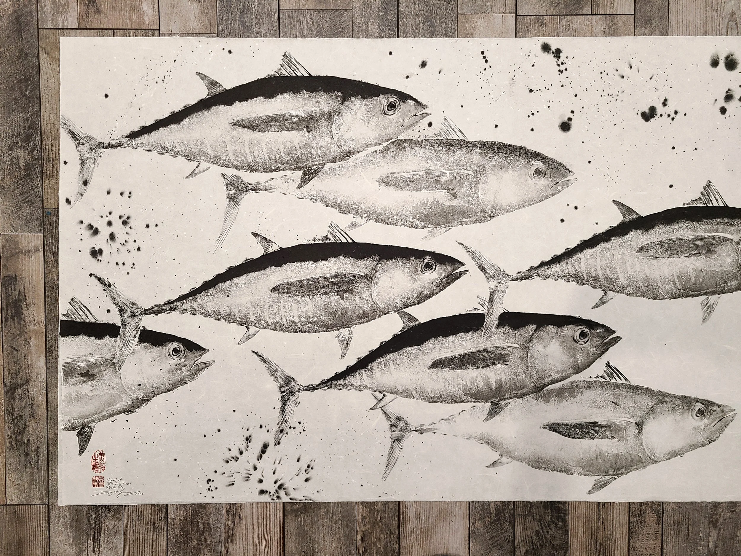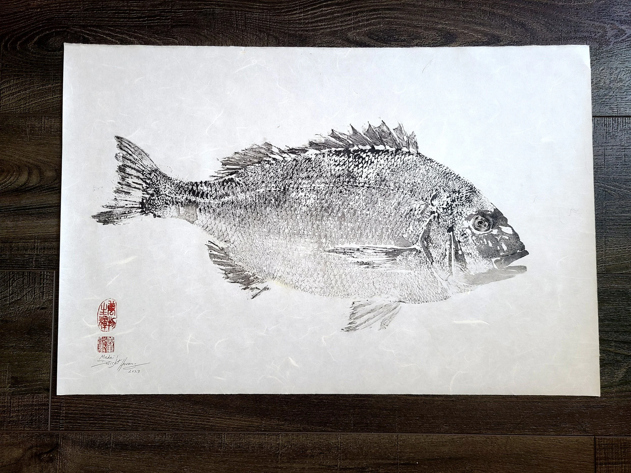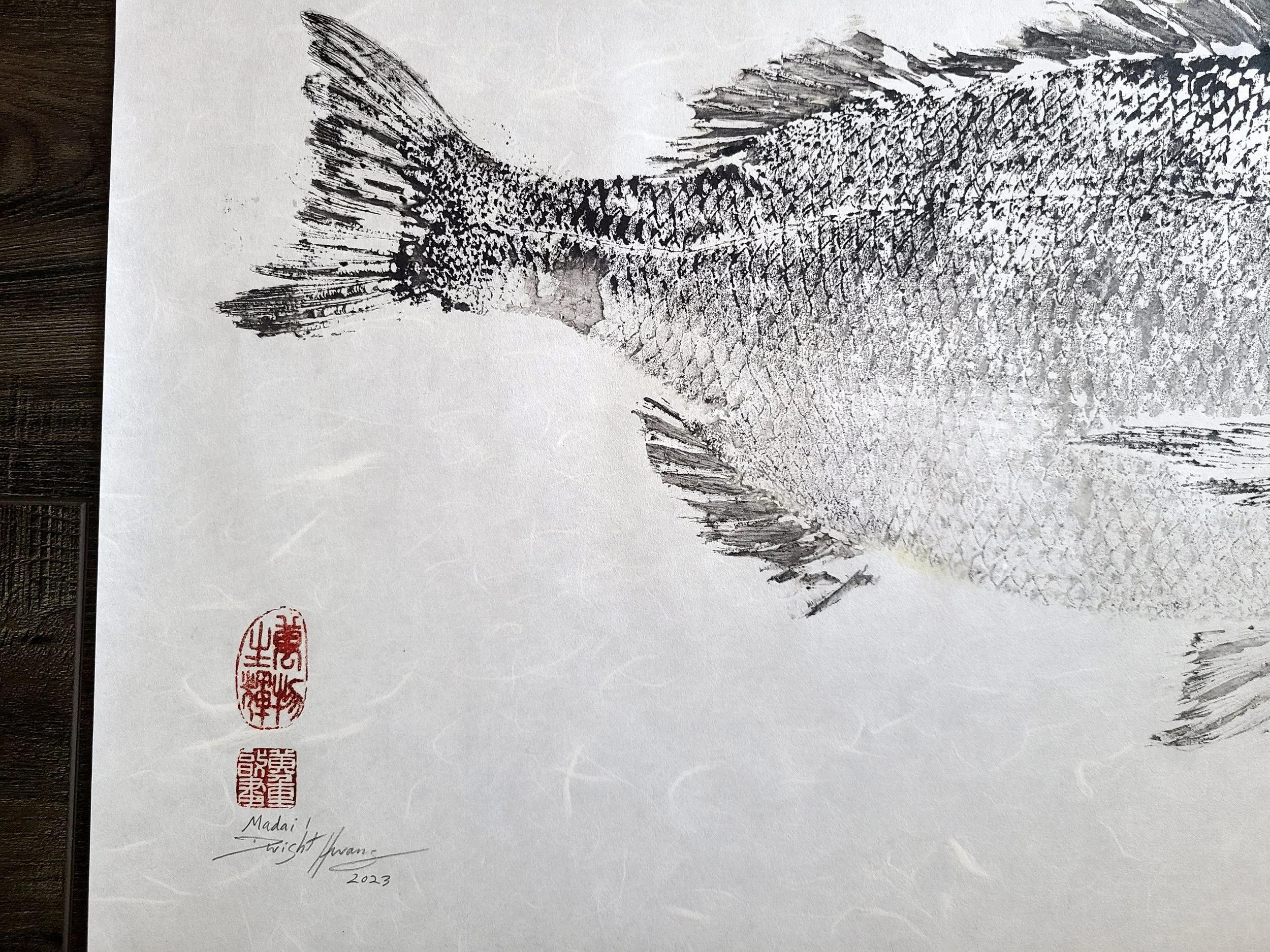 Store › Kanpachi Amberjack Original Gyotaku 26.5x16" Image 1 of 5 Image 2 of 5 Image 3 of 5 Image 4 of 5 Image 5 of 5 Kanpachi Amberjack Original Gyotaku 26.5x16" $450.00 Sold Out Kanpachi Amberjack by Dwight Hwang.26.5” x 16”Please inquire regarding framing. Sold Out Added! Kanpachi Amberjack by Dwight Hwang.26.5” x 16”Please inquire regarding framing. You Might Also Like Japanese Madai I $650.00 Turbot Top & Bottom 29.5x23" $800.00 Pargo Color I $1,200.00 Hawaiian Mu $950.00 School of Blackfin Tuna with Ink Splashes 58x30" $6,500.00