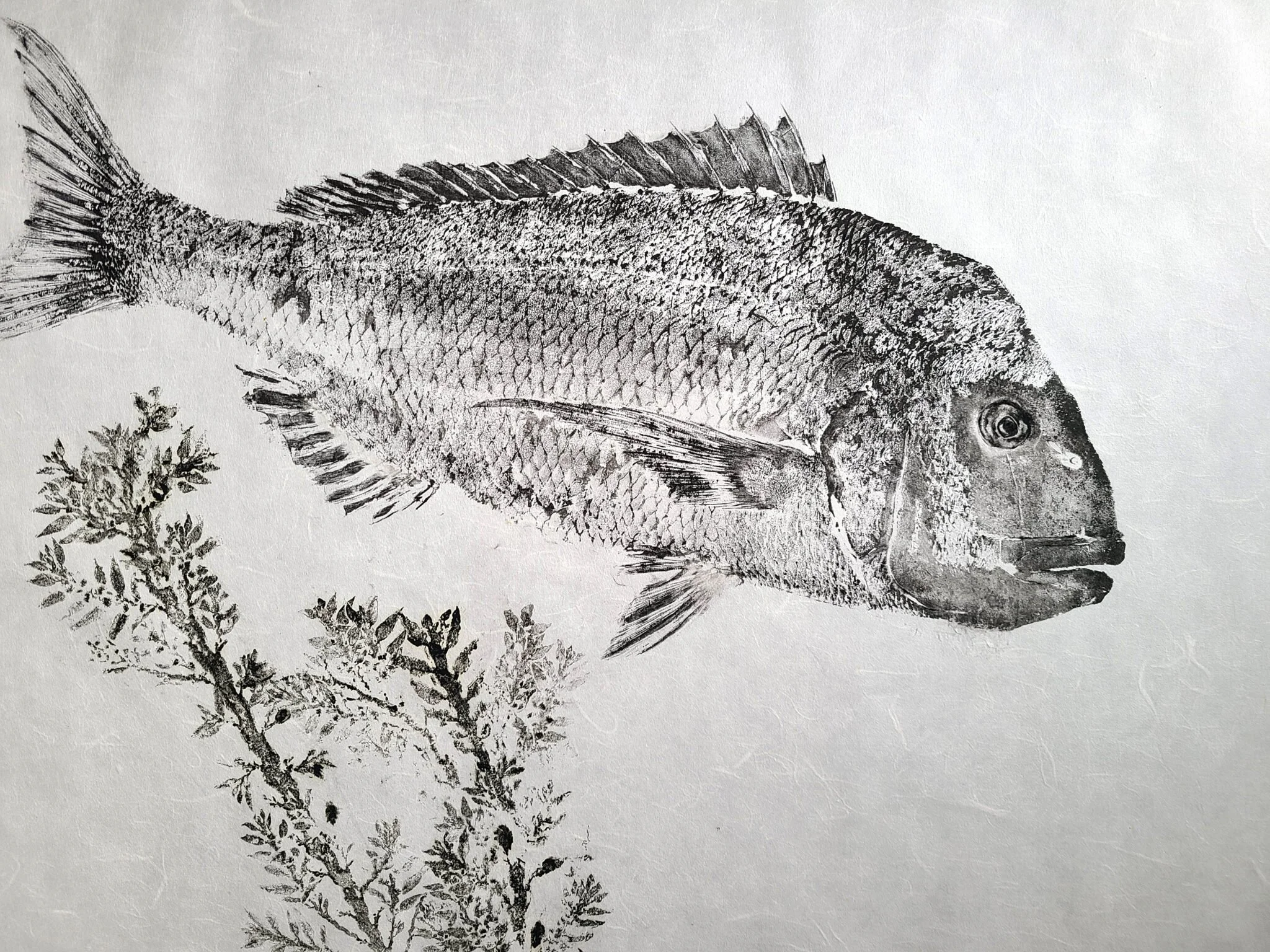 Store › King Mackerel III - 55x25" Image 1 of 7 Image 2 of 7 Image 3 of 7 Image 4 of 7 Image 5 of 7 Image 6 of 7 Image 7 of 7 King Mackerel III - 55x25" $2,400.00 Gyotaku of a King Mackerel by Dwight Hwang.55x25”Please inquire regarding framing. Add To Cart Added! Gyotaku of a King Mackerel by Dwight Hwang.55x25”Please inquire regarding framing. You Might Also Like Weedy Sea Dragon with Coral Shaped Suminagashi I $2,000.00 Striped Bass Color Gyotaku 43x24" $2,200.00 Pargo Color I $1,200.00 New Zealand Snapper Sale Price: $985.00 Original Price: $1,500.00 Sale Striped Bass Color Gyotaku 43x20.5" $2,200.00